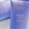 Caviar Anti-Aging Restructuring BOND REPAIR Leave-in Protein Cream with Caviar Bond Enforcing Technology deeply penetrates to support the building blocks of hair—restoring and rebuilding dry, brittle strands and a coarse surface damaged by chemical treatment, heat styling, intrinsic aging and environmental aggressors. This nourishing treatment is formulated with hydrolyzed keratin and bio-identical peptides to help rebuild your hair’s resiliency, adding hydration and manageability to unruly, coarse, damaged hair without weighing it down