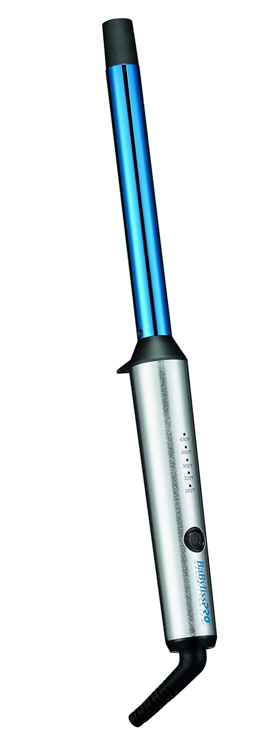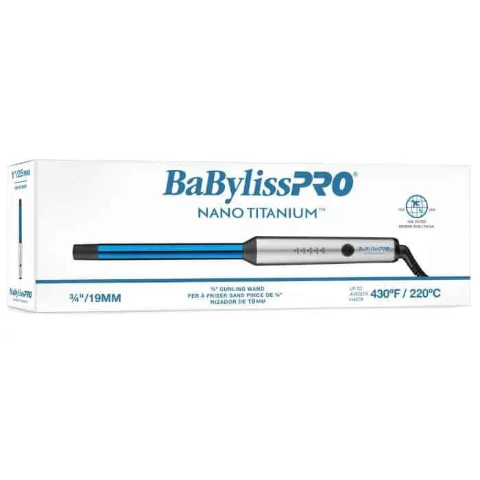The BaByliss Blue Nano Titanium™ Barrel evenly distributes high heat up to 430ºF to create long-lasting curls with radiant shine. The slim design is lightweight and easy to handle for maximum comfort.
