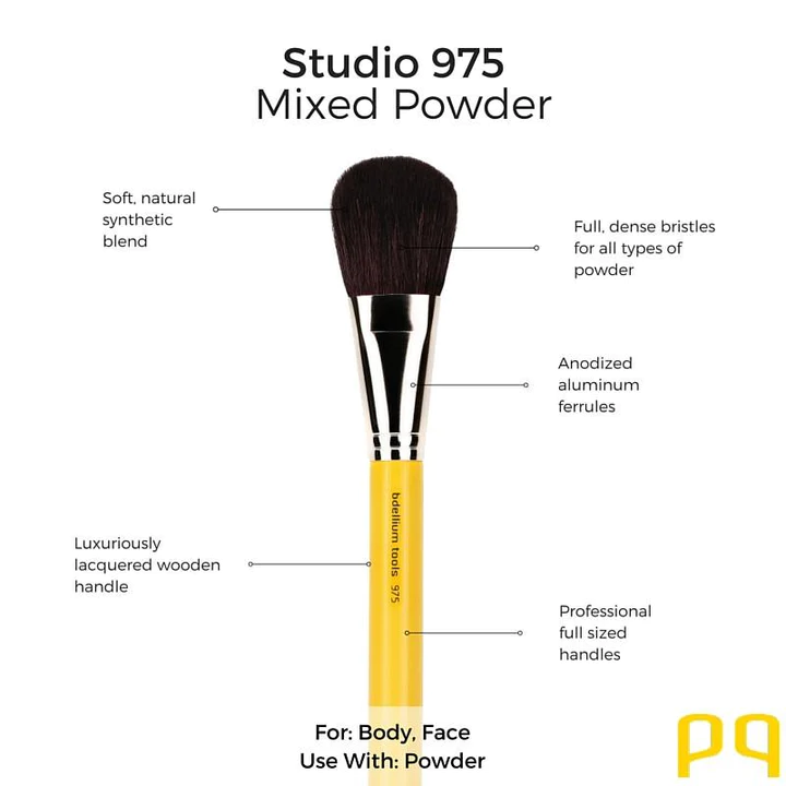 The 975 Mixed Powder brush can be used to apply all types of powder across the face. Its dome shape allows you to effortlessly reach all the crevices of the face for flawless and even application.