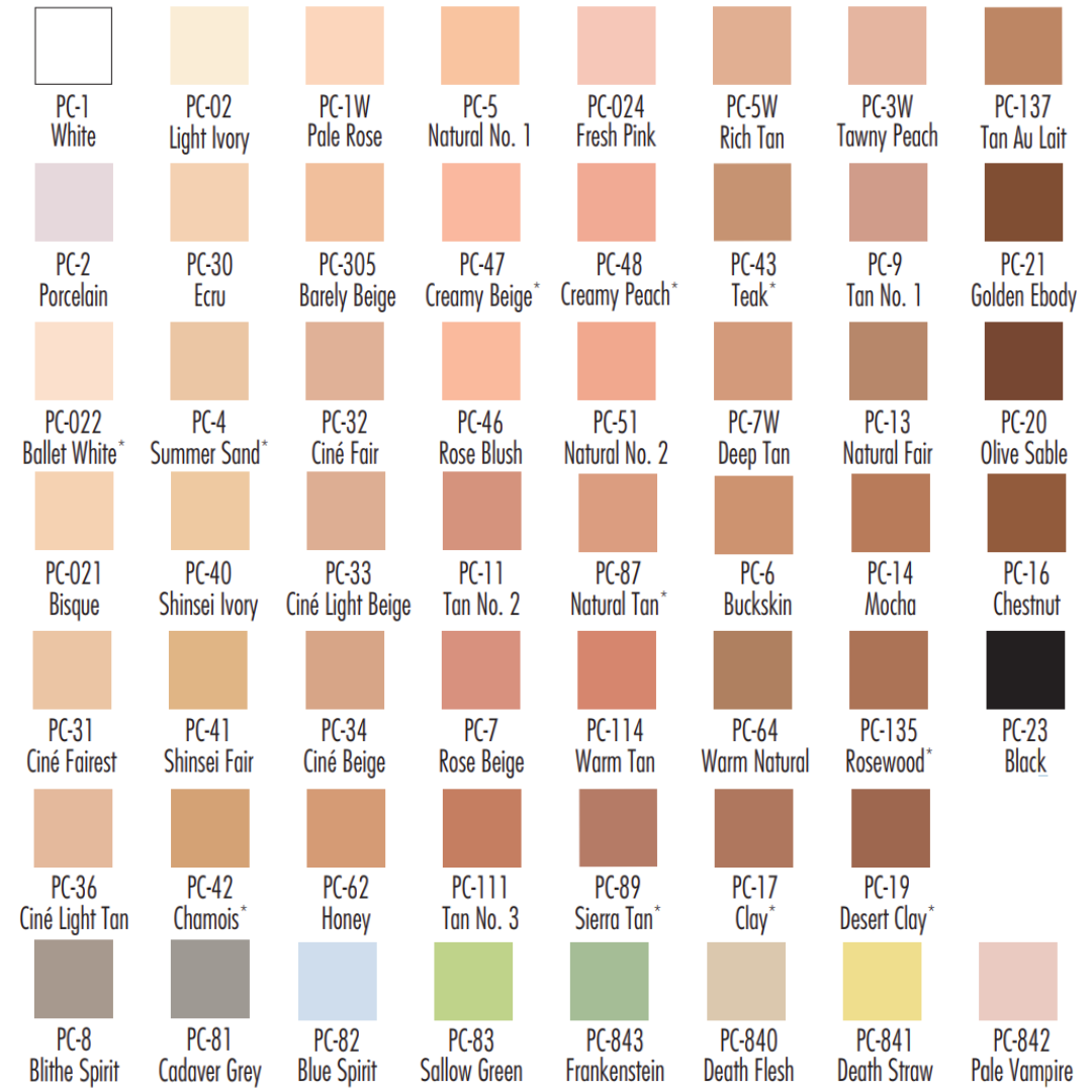 Color Cakes (also commonly referred to as “pancake makeup”) apply wet, then set as they dry, requiring no setting powder. They are ideal for body, beauty, character, dance, cosplay and stage makeup.