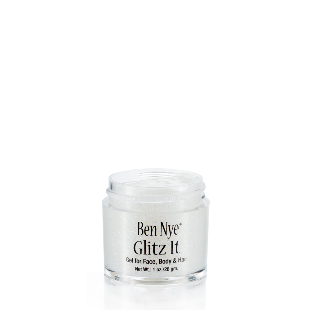 Glitz It Glitter Gel is a dramatic mixture of our iridescent Opal Ice Glitter, in a smooth gel base that adheres to the skin and remains flexible after drying. This special glitter paste is ideal for use on the face, body, and in the hair.
