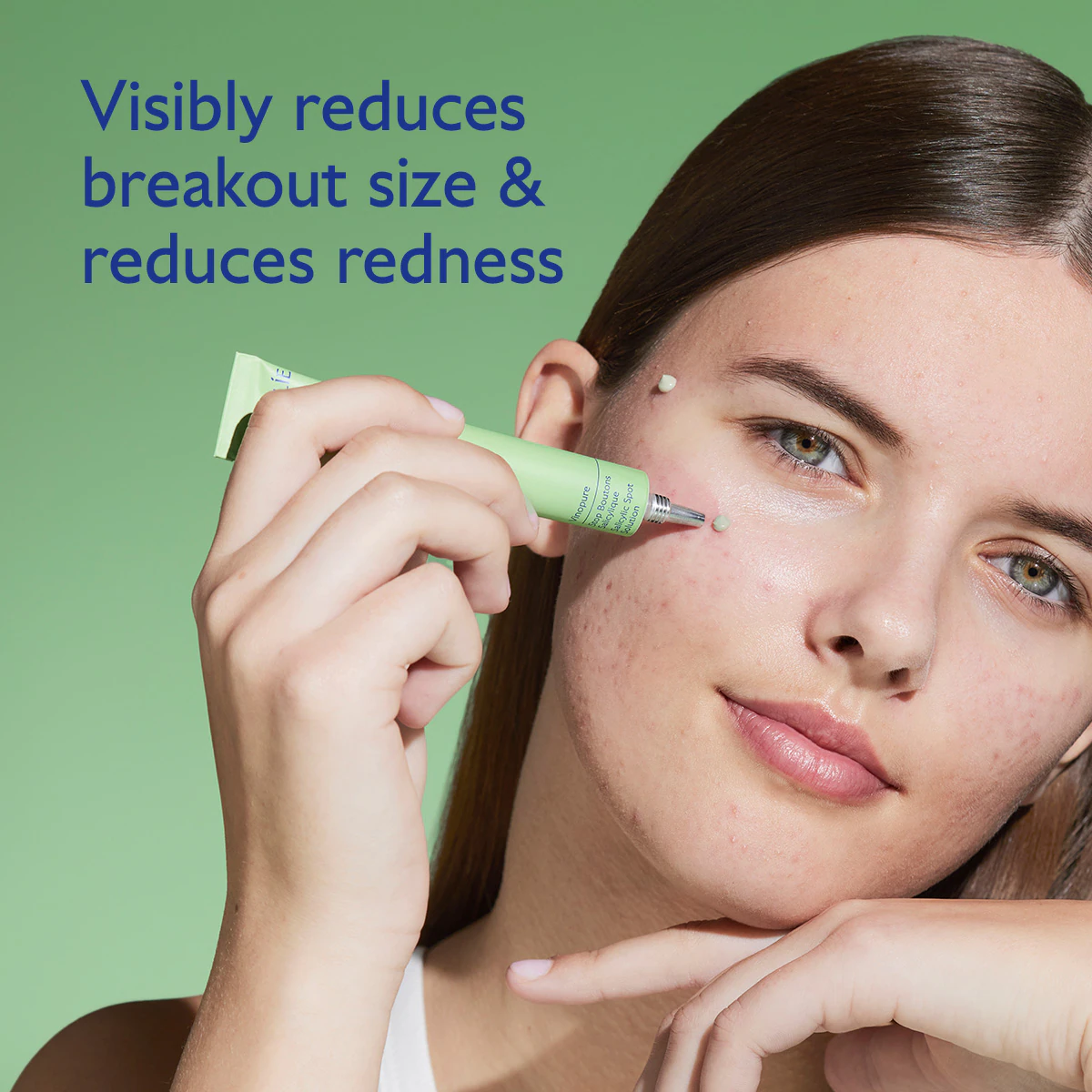 A targeted solution for imperfections that visibly reduces breakout size in as little as 4 hours. Formulated with natural-origin salicylic acid, tea tree, and 2% niacinamide, this fast-acting cream visibly clarifies and reduces redness.
