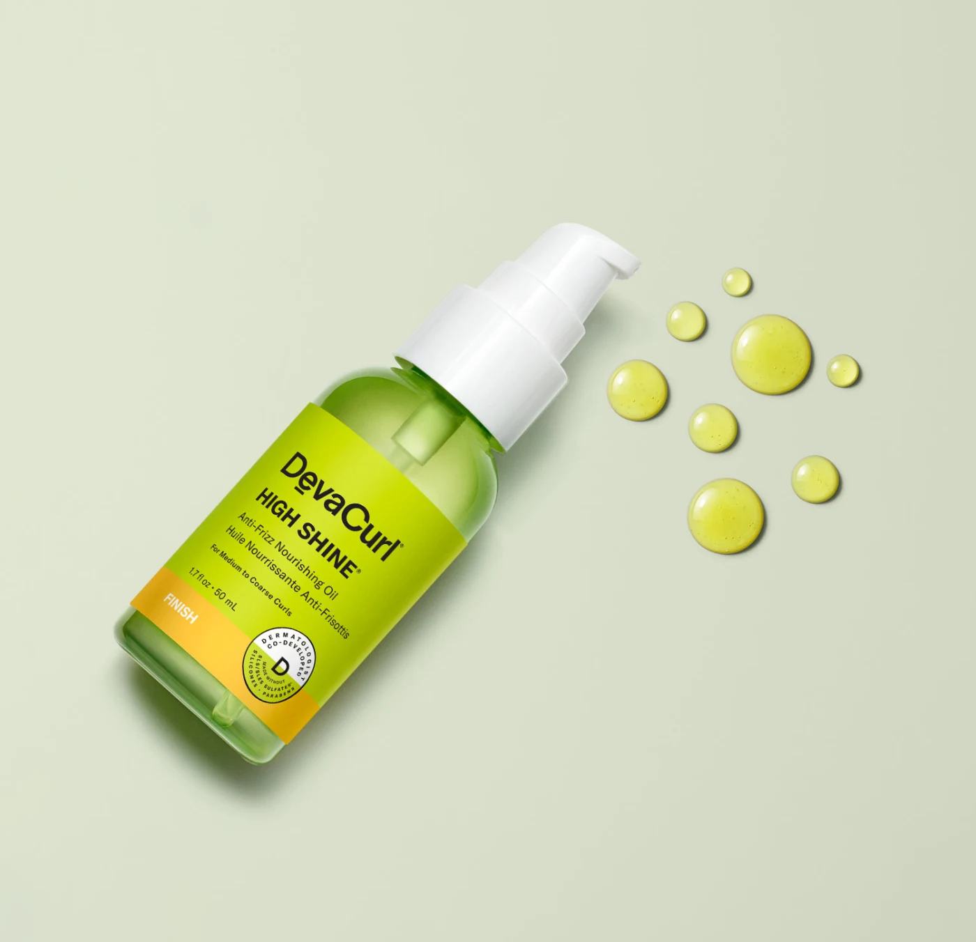 A little goes a long way! Apply one pump of DevaCurl oil into hands and smooth or scrunch through wet or dry curls.