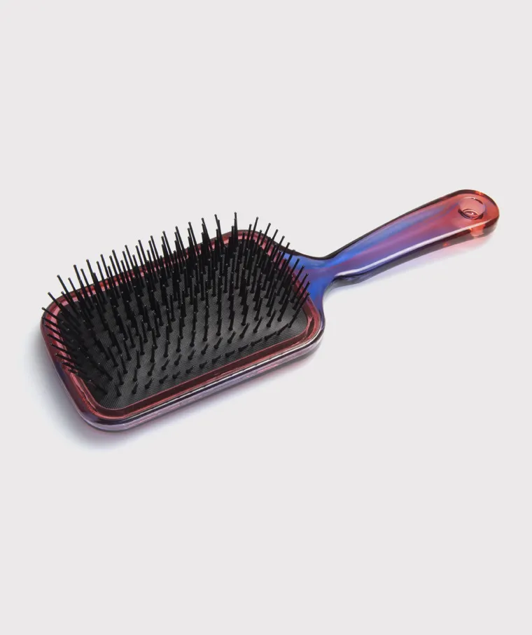 Our Color Fusion Square Paddle, infused with brilliant colors, offers everyday detangling with thick nylon pins and a soft cushion base