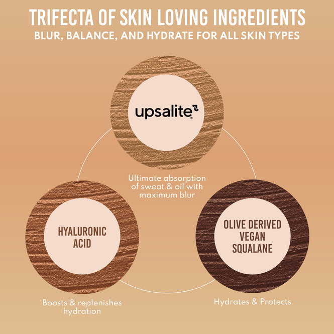 - Upsalite: Balances & absorbs excess sebum & sweat while maintaining skin’s hydration