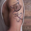 Color waterslide tattoo with reverse image on the back to help with placement.