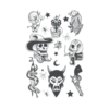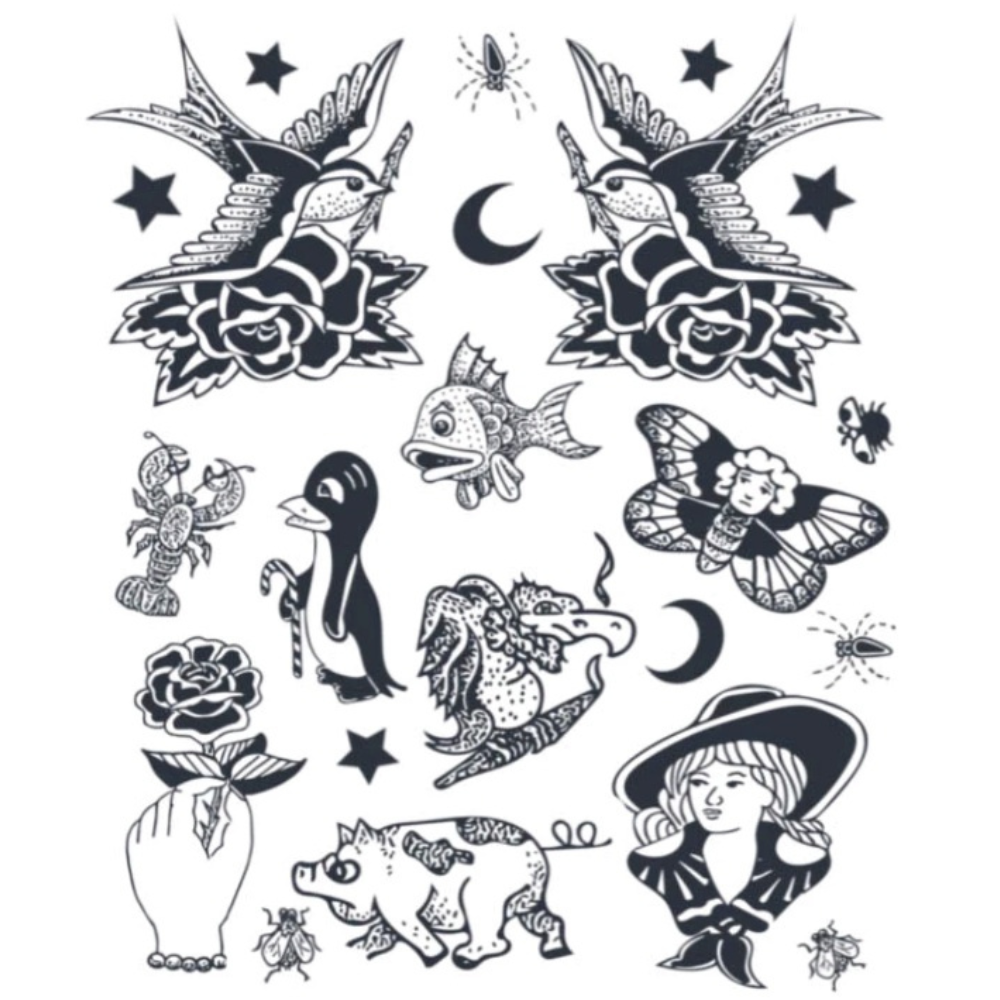Black and grey waterslide tattoo with reverse image on the back to help with placement.