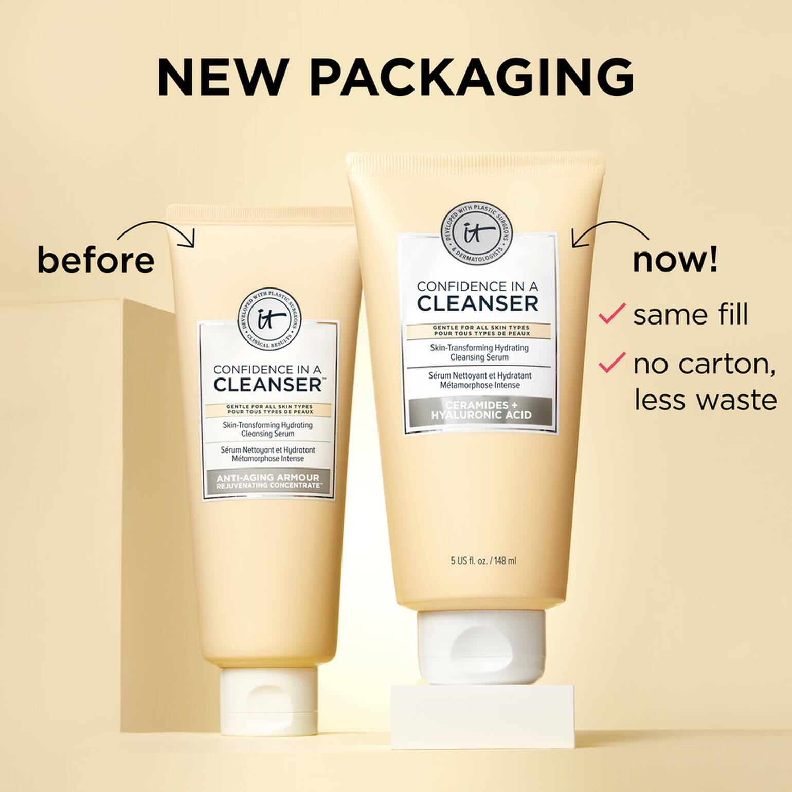 Discover IT® Developed with plastic surgeons and dermatologists, Confidence in a Cleanser Hydrating Facial Cleanser Serum is your skin-loving cleanser that combines the cleansing power of a foam cleanser with the hydration of a serum! It gently removes makeup, oil, SPF and traces of pollution while supporting your skin barrier. Gentle enough for twice daily use without drying or stripping your skin, it delivers immediate and lasting hydration, making it the perfect facial cleanser for even the most sensitive skin types.