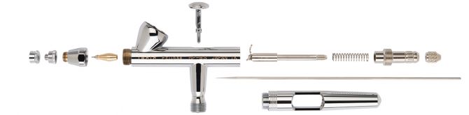 Iwata Eclipse Series airbrushes feature an exclusive compression fit nozzle that is easy to clean and assemble. The quick flush cutaway handle allows easy access to the needle so that you can quickly empty the paint reservoir for cleaning. Iwata’s spring-steel needle resists breakage and our needle packings are solvent resistant for longevity. Iwata Eclipse airbrushes come with a head cap spanner that is used to remove the head cap when accessing the nozzle. Also included is Iwata Lube, which is used to lubricate the needle and main lever mechanism. Hugely popular, Iwata Eclipse Series airbrushes offer all-star versatility.