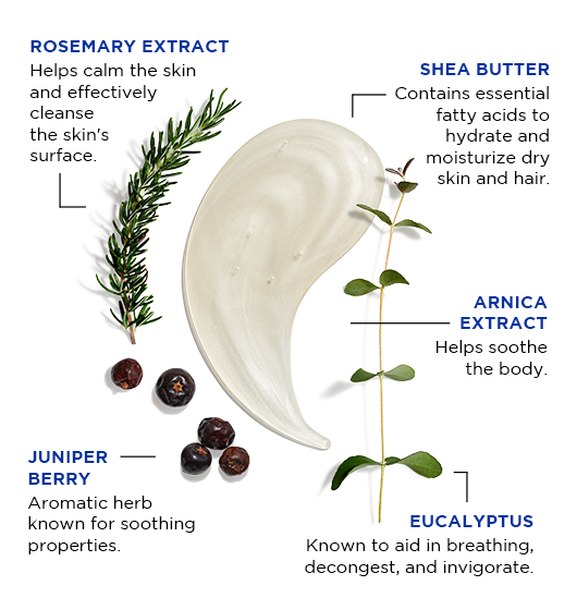 This dual-purpose, sulfate-free body and hair cleanser washes away dirt and sweat without overdrying, leaving the entire body feeling revitalized for peak performance. Rosemary and Eucalyptus offer a cool, refreshing aroma to energize the senses, while the soothing properties of Juniper Berry and Arnica help relax the body. A blend of sulfate-free cleansing agents effectively cleanses the skin and hair without the stripping of essential moisture.