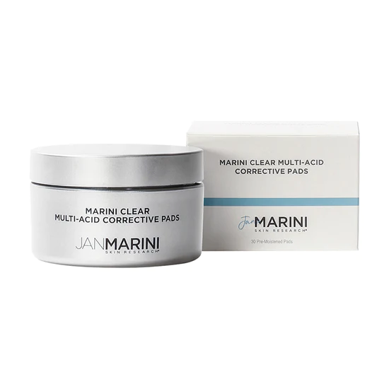 Apply Marini Clear Multi-Acid Corrective Pads to clean, dry skin. Using a pre-moistened pad, apply product to the entire face avoiding eyes and lower eyelids. Wait 10-15 minutes, then remove with tepid water and a wash cloth. For sensitive skin or during dry cool weather, reduce wait time to 3-5 minutes. Apply a JMSR moisturizer post application. Wait 2 days between each use of these niacinamide & glycolic acid face pads. Once skin is acclimated, frequency may be increased. For best results, use with the Jan Marini Skin Care Management System™ and recommended JMSR accelerator.