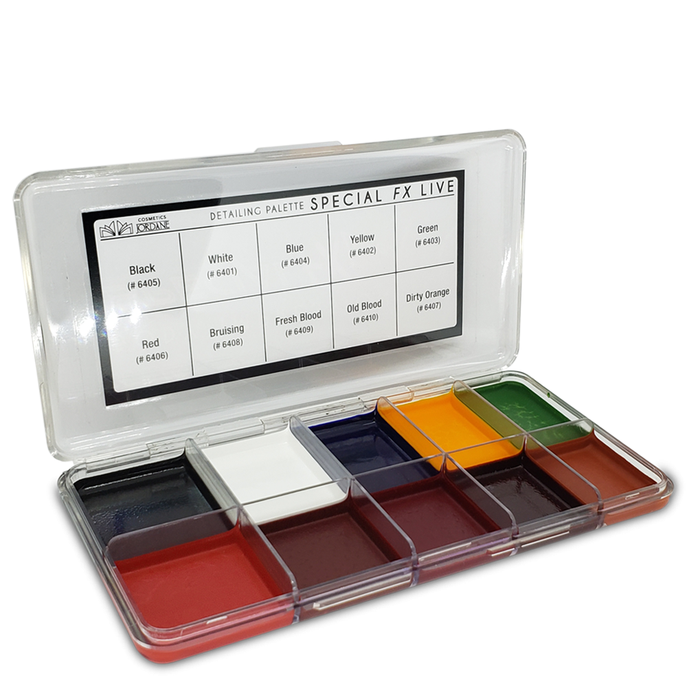 Jordane Alcohol Palettes are highly pigmented to provide an immediate color pay-off and is specially formulated to allow the make-up artist to create a variation of designs perfect for theater, film, Halloween, fantasy and character and not limited to aging, ethnic groups and skin toning. This unique formula is designed to achieve multi-benefits that is high payoff, no irritation to the skin, long lasting with natural look.