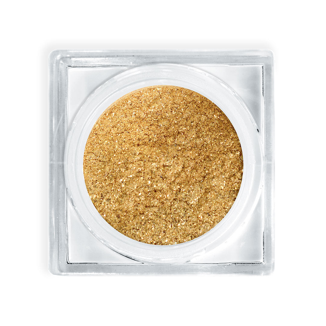 A mixture of highly pigmented gold mica and gold flake. . Great for adding a POP of sparkle/shine over lipstick/gloss or using a powder brush to create highlight on cheeks, shoulders or chest.