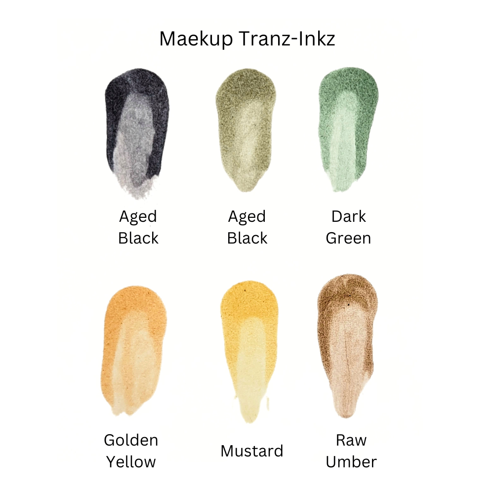 Maekup Tranz-Inks are waterproof & rub resistant gels for creating translucent effects. Great for bruising, aging, veining, faded tattoos, and creature details. All colors are fully intermixable.