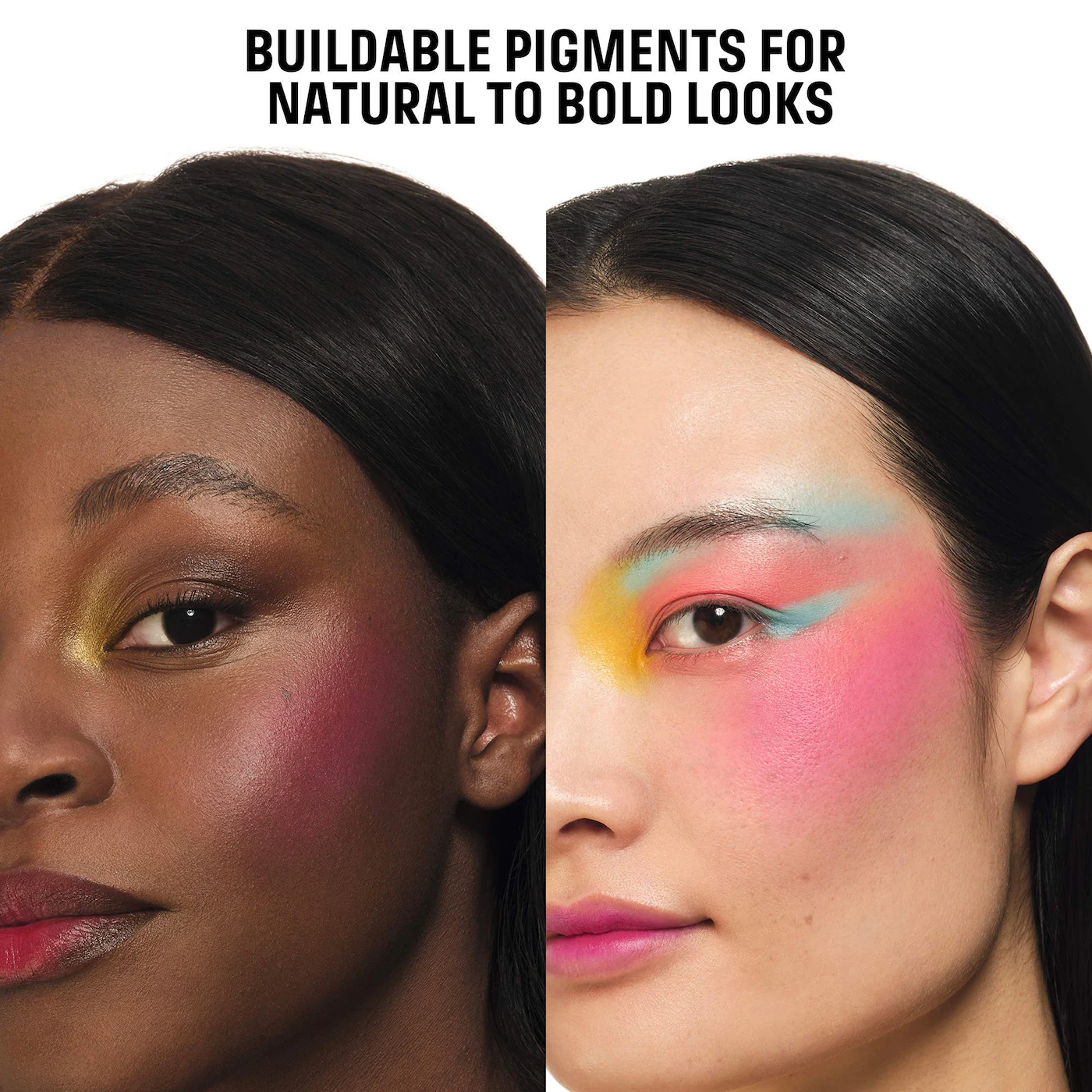 Unlock your imagination with this easy-to-use, playful palette. The lightweight, blendable formula of these bold shades can be mixed to create every color imaginable and is buildable enough to create any look from a sheer wash of color on the cheeks to intense, graphic looks on the eyes.