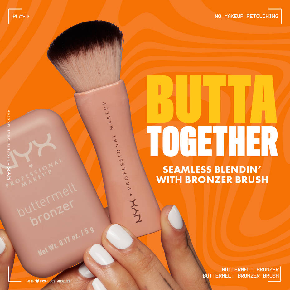 Butta bronze, butta blend, butta boom! Get this sun-soaked bronzed look and stay buttered up all day long! Buttermelt Bronzer blends like powder & glides like pure butta! This bronzer makeup formula melts into skin delivering a butta’d up bronzed finish & silky-smooth skin that’s never muddy, patchy or orange. True to skin bronzing for a sun-soaked bronze all year round. Fade & transfer resistant, Buttermelt Bronzer has up to 12 hours of wear. This face bronzer is available in eight buttalicious soft glow shades infused with mango butter, shea butter, and almond butter. For a butta seamless application, pair with Buttermelt Bronzer Brush!