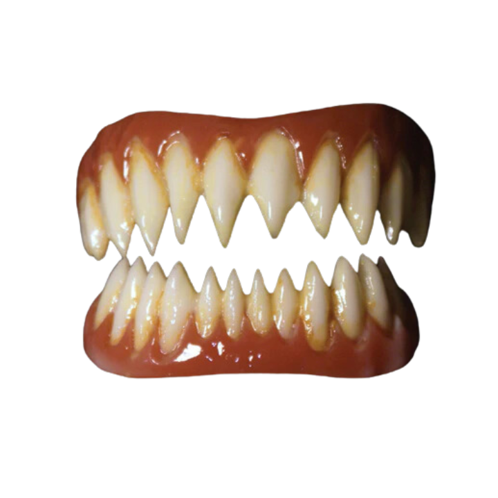 Pennywise FX Fangs are also available in a black gum line!Guaranteed to make any clown downright scary- just slip on a pair of these dental veneer fangs from Dental Distortions and perhaps that’s all you’ll have to do. Designed to make any costume look more frightening or use your imagination and design one around these fangs. Not to be worn with braces. |