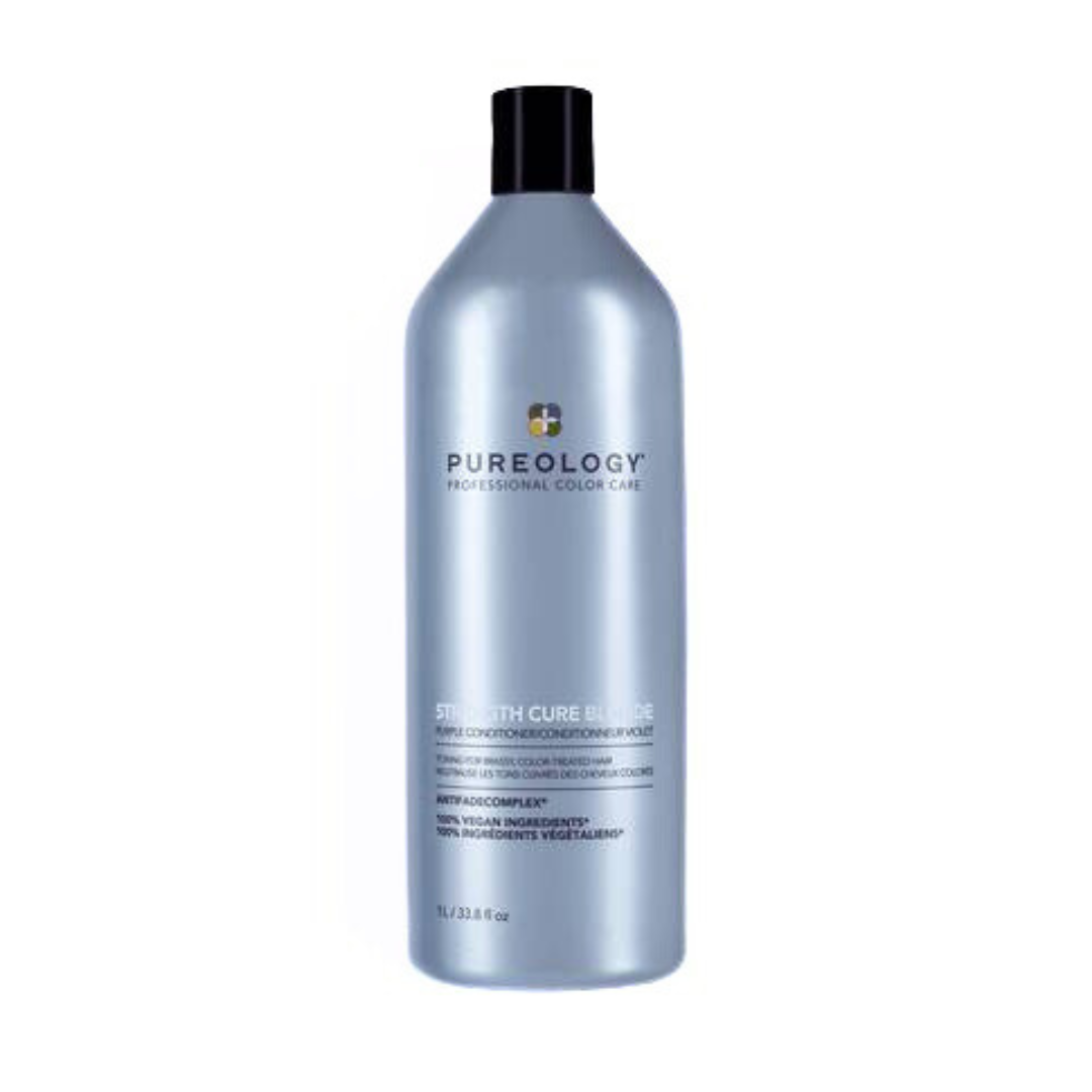 Pureology purple conditioner that tones down brassiness and strengthens damaged hair.