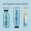 Repair damaged hair with the Pureology Strength Cure Kit, which includes the Strength Cure Shampoo and Conditioner duo that nourishes and protects hair from color and damage. It also includes the Color Fanatic Leave-In Conditioner for shine, detangling, and heat protection.