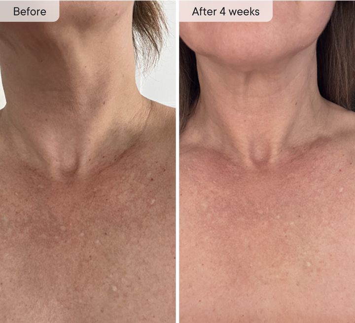 - Smoother, firmer-looking skin on the neck and chest