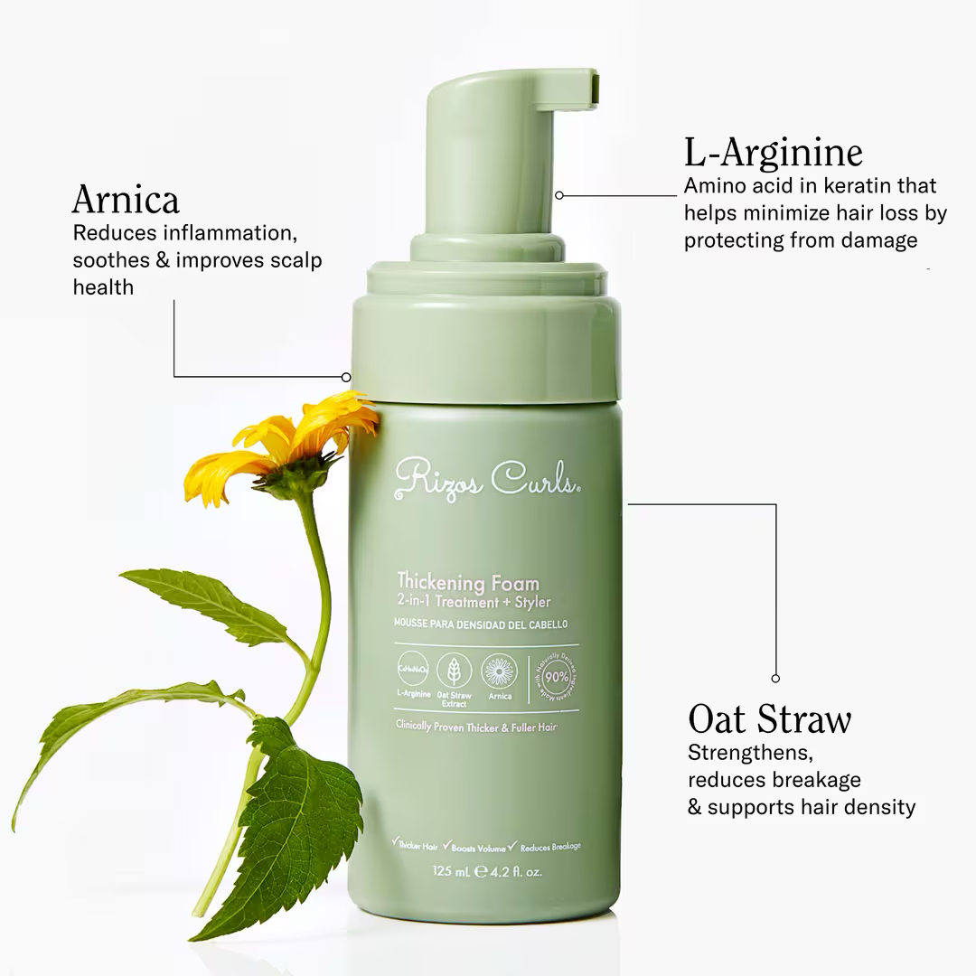 Multipurpose lightweight foam for fuller & stronger hair. This Thickening Foam Treatment improves hair thickness, reduces breakage, boosts volume at the root & visibly improves hair health. Made with L-Arginine, Oat Straw Extract, Arnica, Saw Palmetto & more.