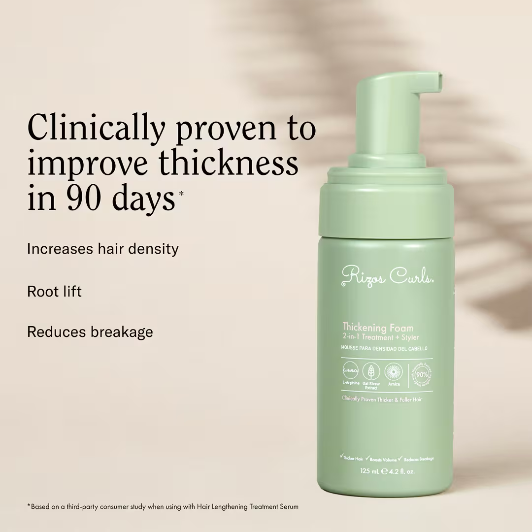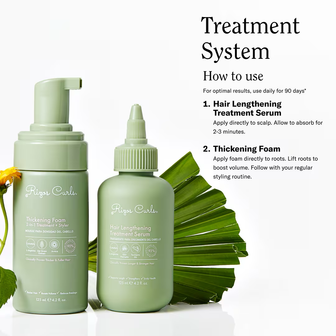 *Based on a 90 day third-party clinical study when using Hair Lengthening Treatment Serum and Thickening Foam regimen