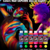 ProAiir comes in a vast array of vibrant colors (also available in sets) including UV (black light) activated neon fluorescents and Ghost Glow, which goes on clear but glows light blue under black light! Great for creating hidden designs or a giving a glowing effect over other colors!