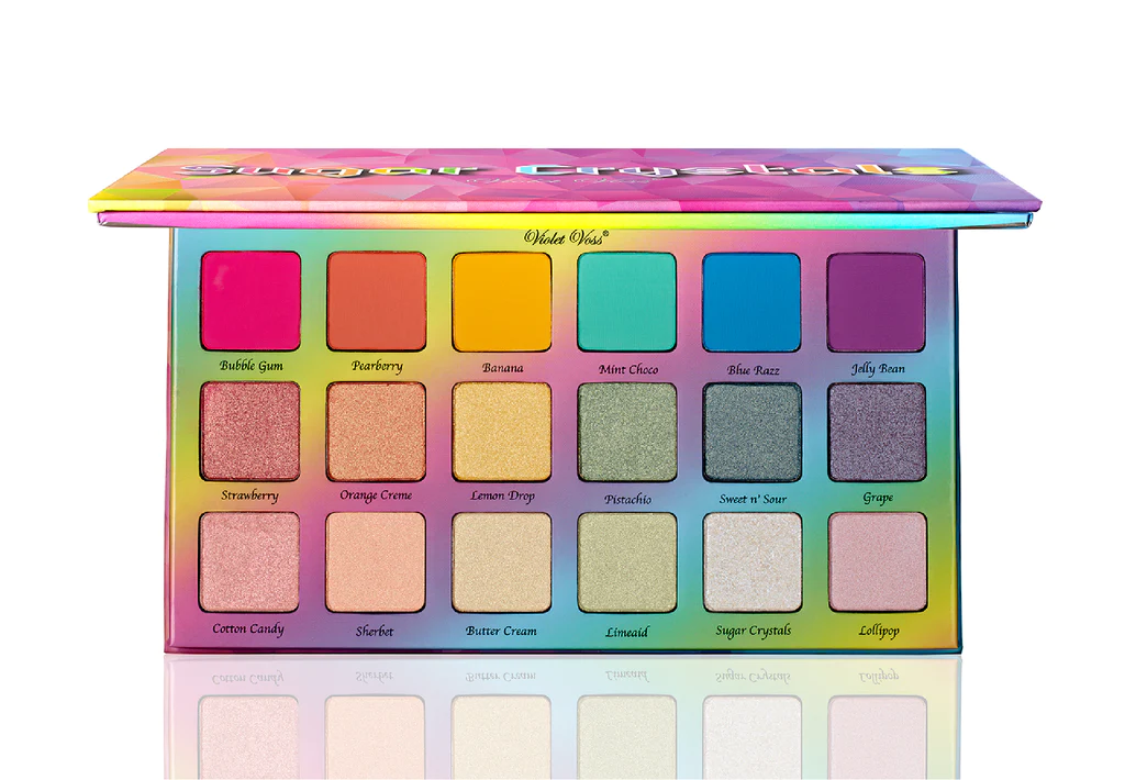 The Violet Voss Sugar Crystals Palette features all the fun bright colors you could desire. The top row features shades in a matte finish, the middle row features coordinating duo-chromes, and the bottom row features stunning transition and topper shades to take your look to the next level. The shades in this palette are highly-pigmented, and are infused with jojoba oil. This easy-to-use formula is ideal for creating endless vibrant, selfie-worthy eye looks that showcase your creativity.