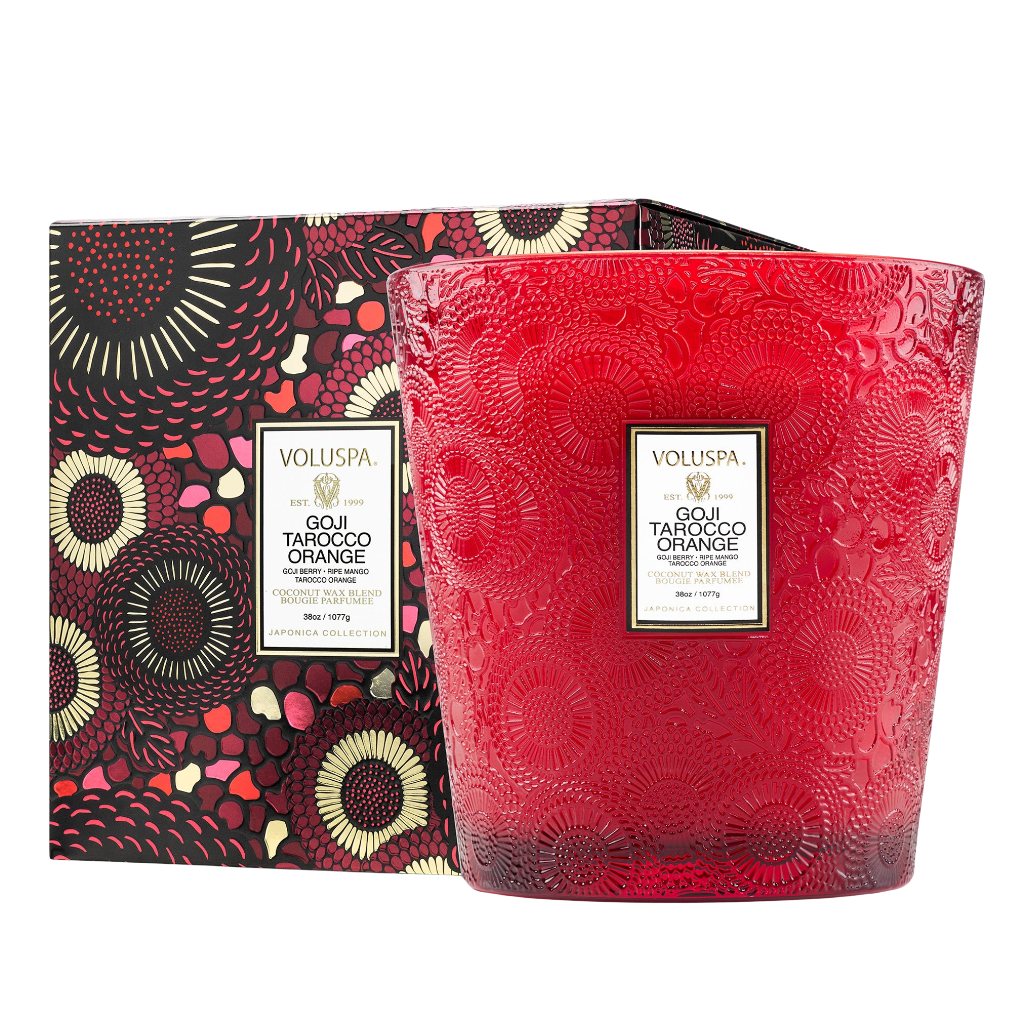 Voluspa’s unique coconut wax blend is housed in a 38 oz. embossed glass jar with decorative gift box. Our three wicks allow you to enjoy fragrance throw for 80 hours. Our candles are handcrafted in the United States and feature our proprietary, clean-burning coconut wax blend and natural wicks. Our products are free of phthalates, parabens and sulfates and are never tested on animals. Up-cycle this best seller into a keepsake after the last burn.