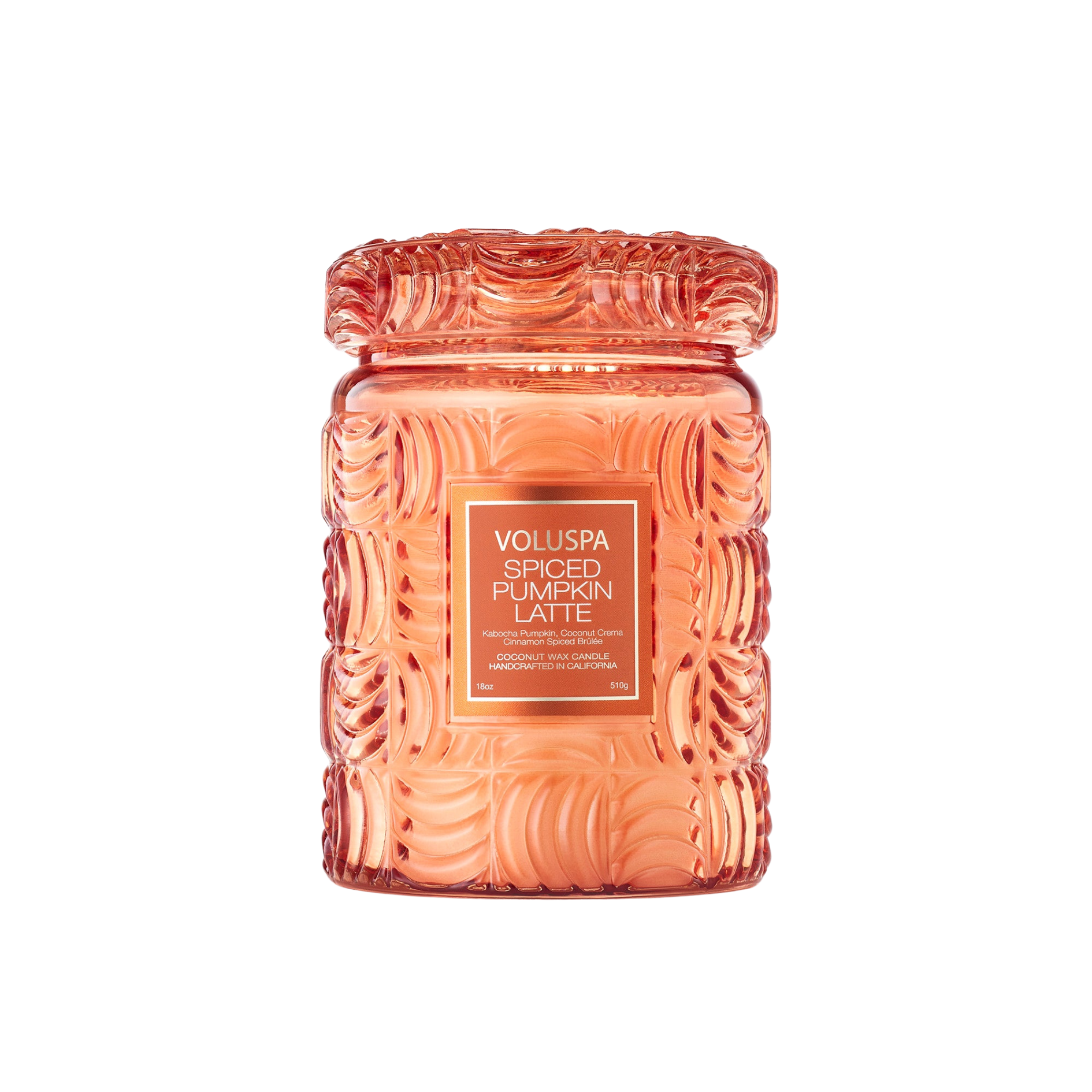 Voluspa’s unique coconut wax blend is housed in a 18 oz. embossed ribbed pumpkin pattern glass vessel and is topped with a matching lid that keeps the candle dust-free when not in use. The single wick allows you to enjoy fragrance throw for 100 hours. Our candles are handcrafted in the United States and feature our proprietary, clean-burning coconut wax blend and natural wicks. Our products are free of phthalates, parabens and sulfates and are never tested on animals. Up-cycle this best seller into a keepsake after the last burn.